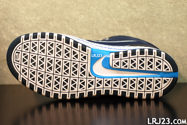 After several weeks of waiting and wondering we finally have some close up photos of LeBron James’ 2009 NBA All-Star shoes. They are not as flashy as we are used to, because they seem like an pimped up version of the White/Navy GR with gradient toebox and additional powder blue details. Of course, the ASG VIs are a great match for this year’s Eastern Conference jerseys. Distribution method is still unknown, but last year they were pretty easy to get.