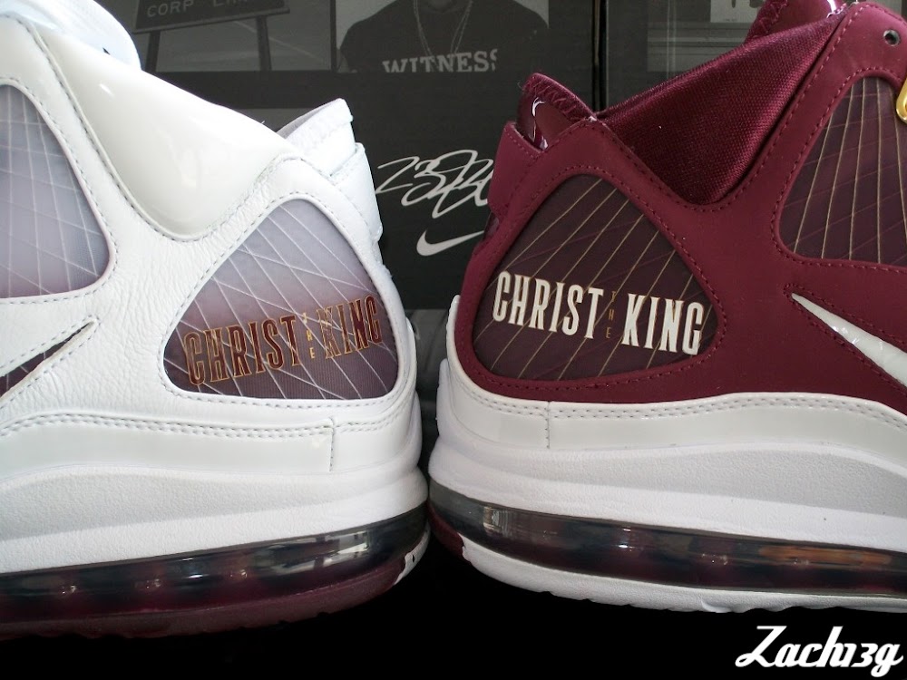 Since the season is over, all sort of rare LeBron VII PEs are leaking to the Internet on a mass scale. That’s also usually the last stage before the next installment makes its highly anticipated debut on blogs and forums. Today we’ve received some detailed photos presenting the Christ the King colorway of the Nike Air Max LeBron VII. It’s the Home edition, which was previewed one week ago. Unlike the Away version, Homes were not released to public. Only CTK Royals basketball players are bound to wear them on court. However, collectors always find their way. Enjoy the new photographs and see how they compare with the Aways. Courtesy of Zach13g.
