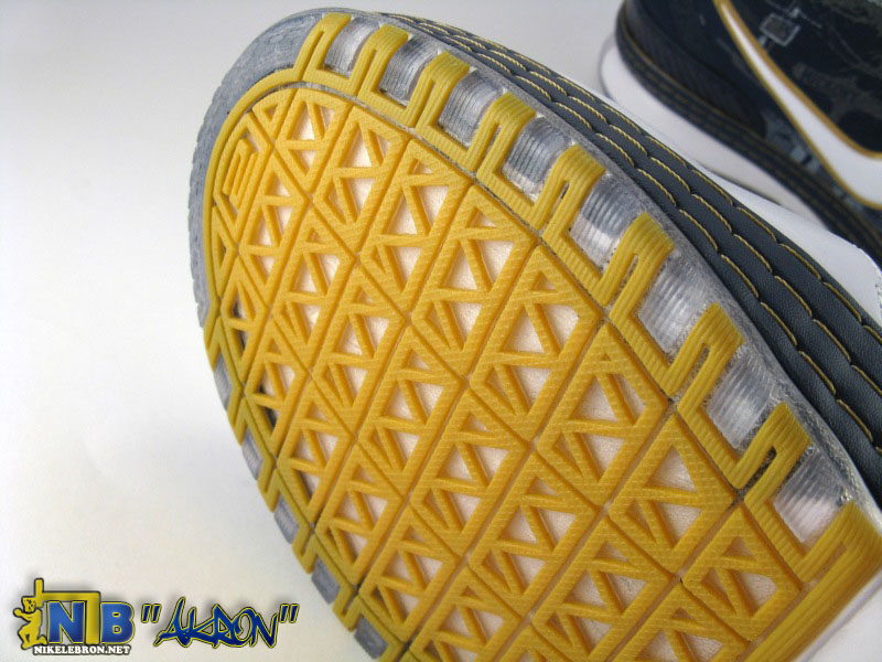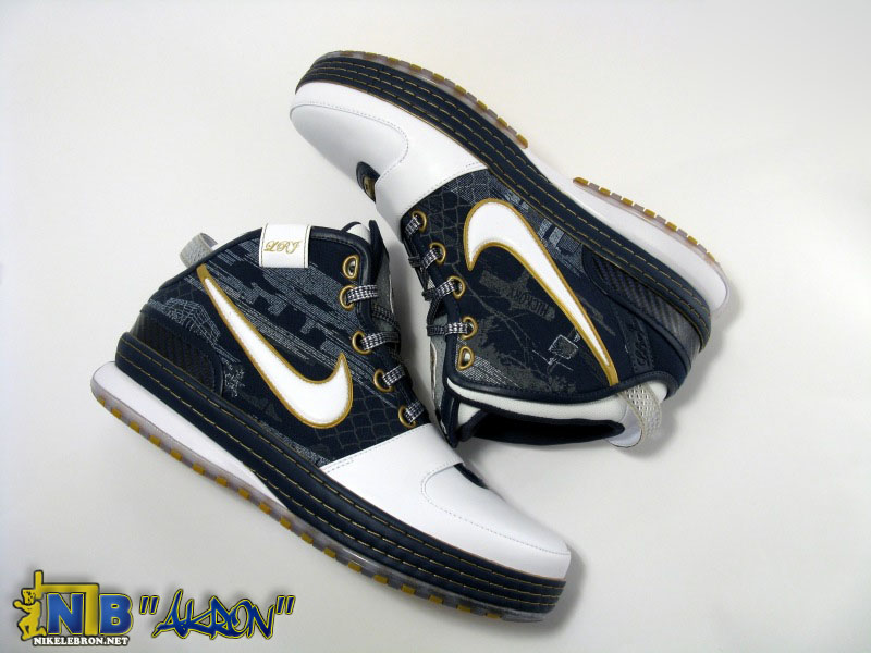 Akron Nike Zoom LeBron Six… the shoe that has targeted Akron as its main inspiration. Finally fans from 330 have a special sneaker for their own special NBA player. For years LeBron James has been talking about “putting Akron on the map” and although he did just that when designing the Zoom LeBron V, the Akron Six seems to be a better fit. We have featured this shoe several times already, but this time we have some photos of our own exclusively for our faithful readers. In the past it was hard to spot King James wearing his signature shoes off the court, but he did wear this memorable sneaker during 2009 NBA All-Star Dunk Contest. With its unique design the Akron ZLVI is definitely one of the best colorways released. Apparently you think so too. The sole is probably the best part as it incorporates all three colors – White, Navy and Gold – in a very cool design featuring a translucent outsole. Also, it features a White toe along with Navy side panels that include detailed images of LeBron’s home city, right down to the sign from the street (Hickory) he grew up on. The finishing touch is the Zips’ logo behind the LRJ tab to remind us about the general idea behind this colorway. Enjoy the pics, all of them, after the break.