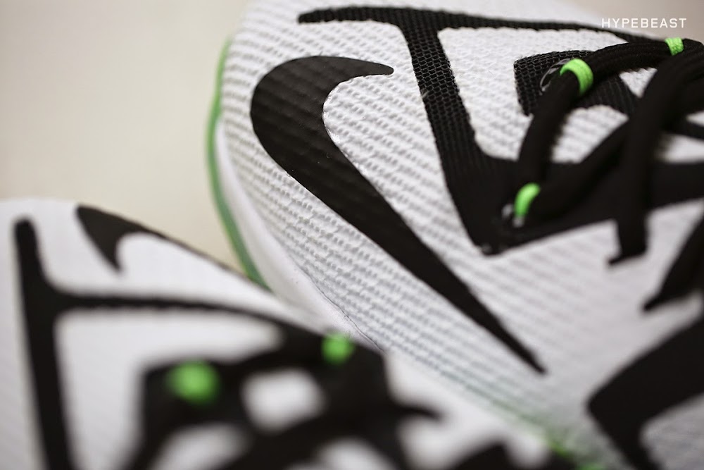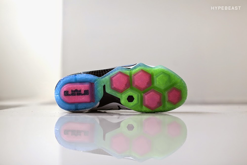 Take yet another closer look at the upcoming Nike LeBron 12 “All-Star” colorway. Part of Nike’s collective package of All-Star Game sneakers that have been designed to represent the architecture and bright lights of New York City, home of this year’s All Star festivities. This celebratory edition of LeBron’s latest signature shoe draws inspiration from New York’s Flatiron Building. A clean white upper, sporting mesh detailing is paired with a gradient, blue/green hue that runs along the shoe’s back panel and bottom sole. Black accents streaking along the sneaker’s upper match the stark black tongue and back side panel, completing the colorway. From the looks of it the availability with be decent… it’s a limited GR in the worst case scenario. If you’re still on the fence check out the new beauty shots below that might push you over.