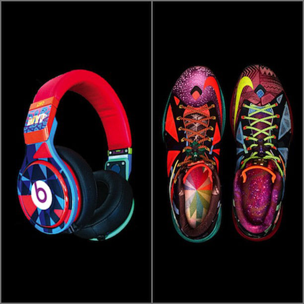 Perks for claiming a fourth MVP trophy extend beyond sneakers for Miami Heat forward LeBron James. Beats by Dre unveiled a special pair of custom headphones made for The King, styled after his “What the MVP” Nike LeBron X shoes. In addition to the colorful design, gold ‘MVP’ lettering adorns the headband. These headphones were made exclusively for King James and most likely won’t be available to public… which makes them sort of like the shoes… impossible to get.