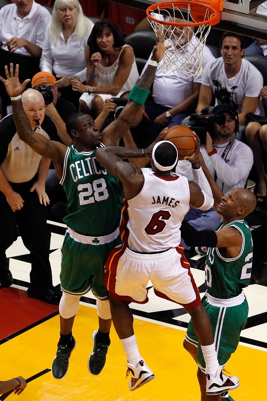 The Miami Heat defeated the Boston Celtics 101-88 Saturday in Game 7 of the Eastern Conference Finals. The Heat won the series 4-3, advancing to the NBA Finals. They will play at Oklahoma City in Game 1 Tuesday. LeBron James’ seven-game performance will go down as one of the most memorable series of all time. He followed up his Game 6 tour de force with a merely exceptional outing. After a quiet, charity-heavy first half, James came alive in the fourth quarter with two barreling drives to the hole on the secondary break, then sustained the momentum. It was probably his best series ever… 6 30-point games, 5 10-rebound games, 1 45-point game, 53% shooting, 2-0 in elimination games, clutch! Check out nearly 50 photos from Game Seven after the break.