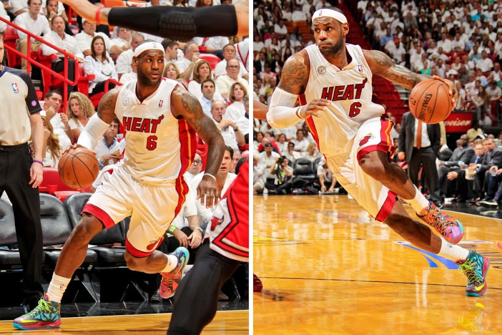 We already asked you about this and you came through with flying colors in the comments, but it’s time to visualize the inspiration behind the “What the MVP” concept that led to create the Nike LeBron X MVP – a tribute to LeBron James’ 4th Most Valuable Player award. Like other famous “What the” creations, this shoe serves as a collage colorway of many other favorites. Check out the breakdown below as as our friends at nicekicks.com highlight some of the previously released LeBron X makeups that were featured on this celebratory sneaker. Continue reading to see how the Prisms, Jades, BHM’s, Allstars and a couple more styles come together for the Nike LeBron X MVP.