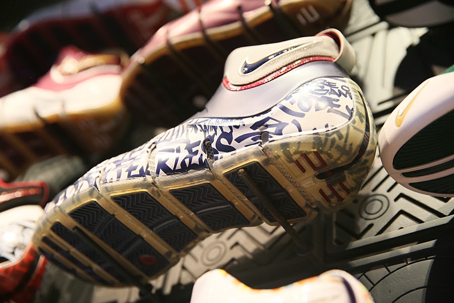 Recently, we’ve learned that Nike ran an entire set of the LeBron series in all white and all black for showcase purposes, similar to the display sets that Jordan Brand had ran. While in Beijing yesterday to help walk media through the new LeBron 11, Nike Basketball Footwear Product Director Charles Williams broke out a rarely seen pair from the LeBron White Collection and took things back to the 2005-2006 season with a pair of Zoom LeBron IIIs. Just for this event, Nike prepared a special event over-the-top wall display of the entire Nike LeBron series. From the Air Zoom Generation to all of the more recent signature models, the gallery had some of the most exclusive and sought after LeBrons ever made.