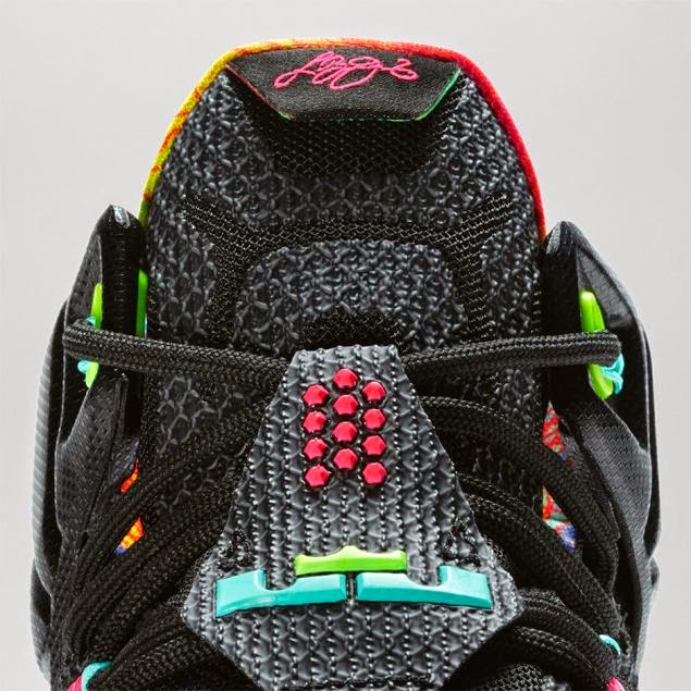 If you’ve been waiting for a toned back look on the LeBron 12 your day is almost here. The “Data” version of the Nike LeBron XII was initially scheduled to be released on Saturday, December 20th, but Nike will launch them one day earlier on Friday, December 19th. It’s still not the classic Black and Red, per se, but it’s still the closest we get to an unobtrusive look on the LeBron 12. There’s still a lot of eye-popping colors around including “Pink” swoosh logos, Volt / Turquoise LBJ logo, and a graphic inner lining. Is it a perfect present for LeBron fans on Christmas instead of the actual XMAS colorway? Let us know in the comments below.