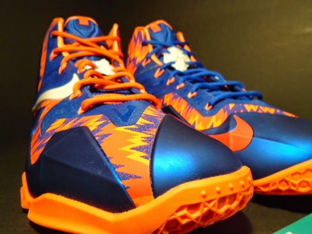 Last week a couple of interesting School LeBron 12 PEs surfaced the Internet. Today, we take a closer look at one of the most interesting from last season offerings… the “Florida Gators” LeBron 11 PEs. This was the very first time that Gators got personalized kicks from the LeBron James brand and it was indeed special. The popular color blocking was probably enough to create just enough hype, but the custom zig-zag graphics really set these off. Detailed photos have eluded us for a while, but they recently popped up on eBay giving us a much needed closer look at both Home and Away styles.