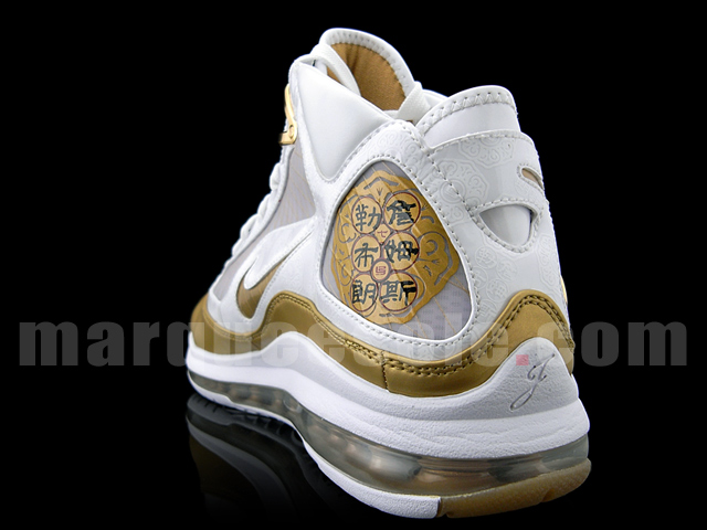 When we profiled the China AML7 two days ago we reserved the right to the final judgment until some better photos surface the Internet. Today, thanks to Marqueesole, we receive that privilege. The Air Max LeBron VII features a White and Metallic Gold colorway with China-inspired attributes at the heel. With new pics the shoes present themselves much better, which was hard to imagine based on the previous ones. What good photos can do to a shoe?! That’s why we are always so focused on finding the best ones possible for our readers.
