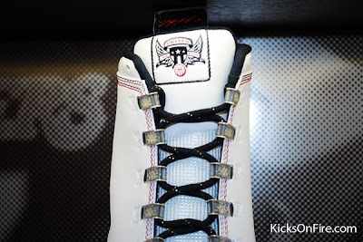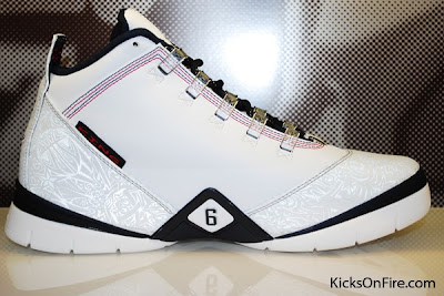 We featured the United We Rise Nike Zoom Soldier II several times already. However, it’s a very interesting design – possibly the best colorway out there – and it deserves all the extra attention. Let’s focus on the reflective Tribal pattern, which is the main theme for USA Basketball gear this year. The multi-faceted graphic tells the story of many cultures coming together under the common theme of victory. Specific elements of the design include: The Statue of Liberty, represented by the torch | Stars and stripes representing the 50 American states | The date of the signing of the Declaration of Independence | Decorative elements from USA nation’s currency | The olive branch and arrows from the talons of the American eagle in the Presidential seal | Celtic, African and Native American symbols and influences | A bleeding heart representing Hispanic culture (info thanks to ridikulas via NT). All this can be found on all Nike 2008 Olympics apparel and shoes. As mentioned before the UWR Soldier II is a part of a special Nike “United We Rise” pack. Be sure to check out some other models like: Converse Wade Team | Nike Air Force 25 Low | Nike Hyperdunk | Jordan Olympia. Click the ‘Read the rest of this entry’ link to see more pics, which show you how the 3M reflective pattern reacts to light.
