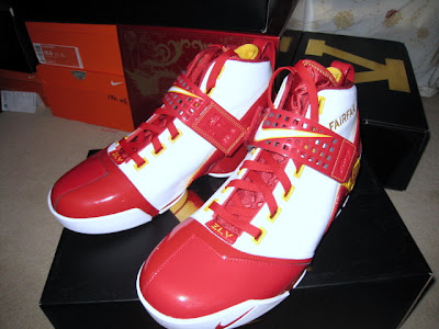 Couple days ago we posted numerous photos presenting the Away version of the Zoom LeBron V customized for the Fairfax High School (L.A.). This time we invite you to take a look at the Home edition that features team’s official Red, Yellow and White colors. Just like in the case of the other ZLV Fairfax this style was never released to public in any way (House of Hoops included). Pics found on kenlu, thanks to user Terence.