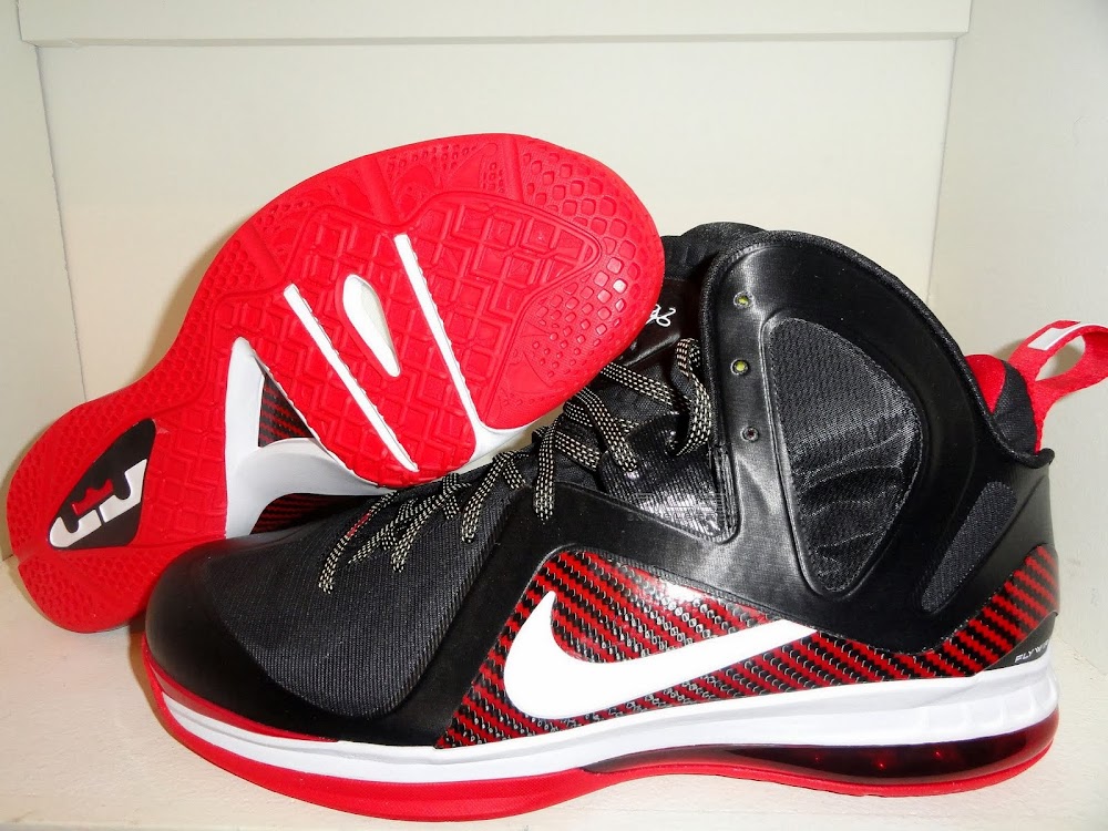 Nike released four great colorways of the LEBRON 9 PS back in 2011… the shoes which, in the end, led LeBron James to his first NBA championship. For the 2012 NBA Playoffs James wore the White/Gold, Black/Gold, Finals Red and four Miami Heat Player Exclusives that are not that easy to find… at all. We were pretty lucky with a detailed on-court look, but it took almost 18 months for the shoes to surface outside of the NBA. This is the Away edition… one of two… that features a very rare red carbon fiber plate. Most of LeBron’s PEs come with digitized #6 logo on the back of the shoe. Hit the jump for more looks at this rare find. Big thanks to @tootall4basketball and @jr_lyon for sharing!
