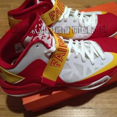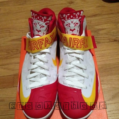 Last season, Fairfax Lions got both the Nike LeBron 9 and Nike Zoom Soldier VI PEs in Home and Away configurations, but mainly used the Soldiers in actual games. This season, we haven’t seen any indication of college and high school colorways being implemented for the Nike LeBron X, but here’s our first look at the Nike Zoom Soldier VI Fairfax Home PE. The new Soldiers seems to be a great platform for schools to personalize. I’m looking forward to see what Nike have got prepared for other schools. Big thanks to a fellow sneakerhead for sharing his pics!