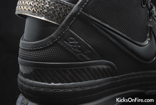 We featured both Black and White/Navy Zoom LeBron VI GRs a while ago, but now have some additional photos of them. They may not be the most exclusive of the VIs, but this year even the regular styles get special treatment. The second and the third LeBron 6 GRs feature basic Nike LeBron colors, but each shoe is finished with additional details, which give away their inspiration. The White and Navy edition refers to LeBron’s love for the New York Yankees and his memorable game from the last season. The All Black, on the other hand, is inspired by LeBron’s favorite comic book character – Batman. The White/Red/Silver GR, which is available in Europe and will drop in US in 2009, is special in some way too, but we will get to that soon.