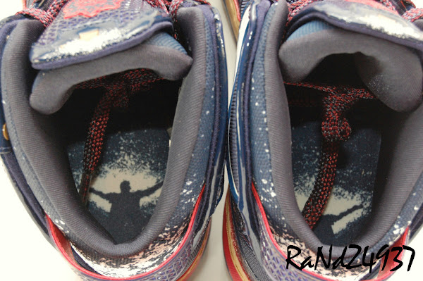 Although we can’t say anything bad about any of the previous Zoom LeBron VIs, the Chalk Edition is probably the most significant thus far. And that says a lot, cause there’s been quite a few colorways. Some may argue LeBron’s NYC kicks are always the most special, but behind inspiration from LeBron’s in-game ritual and Cavs’ alternate jerseys (finally some love for all those folks in Ohio!), the Chalks are beyond reach. Another thing that sets them apart from the rest of exclusive Six’s is they are far more accessible. After numerous energy releases at the House of Hoops stores, Nike finally decided to do an online launch. Kudos for that. However, some may feel disappointed about the fact they didn’t stay that way, cause right now you can get them at some of the regular Nike retailers – Footlockers, Champs, NikeTowns. If you’re lucky enough you will get them sooner than those who ordered via Cavaliers Team Shop. Personally, it’s good to see supply meets the demand for once. The Chalk VI’s – this year’s unofficial Birthday sneakers – feature plenty of small details that make them much more attractive. There’s a silhouette of LeBron holding his arms wide open on the top of the tongue and on both insoles as well. The actual Chalk is spilled around the collar and under the soles too. Baby powder bottle is hidden on the other side of the L23 logo tab. On top of that the Navy Blue patent/Canvas upper sits on a triple stitched “Hardwood” print midsole, which uses a reflective 3M material. See all that and more after the jump. Photos courtesy of Randz4937.