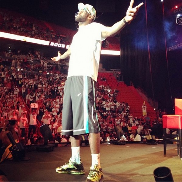 The Miami Heat celebrated their third NBA title in a back-to-back fashion today during the championship parade through downtown Miami. LeBron James wore the “2-Time Champion” version of the Nike Air Max LeBron X Low along with matching socks and a matching hat. “It’s the ultimate,” James told Sun Sports, the Heat broadcast partner, as he rode along the route. “It’s the ultimate. This is what I came down here, to be able to have a parade at the end of the year. I’m extremely blessed, man. It doesn’t get any better than this. All the fans that we’re seeing here is who supported us throughout the whole season, man. This is the least we could do is ride through the city and show our appreciation.” Fans will be able to get a pair of his back-to-back championship kicks this summer as a part of the Championship Pack. Stay tuned for details on the availability.