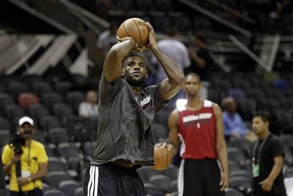 LeBron James is trying to make a statement ahead of Game 4 of the NBA Finals. The Miami Heat star draped a red practice jersey around his neck and down his back for Wednesday’s practice and media session. The message was clear: James is trying to remind himself that he has to play like a superhero – like Superman – for the Heat to come back from their 2-1 series deficit. Matching his Superhero look was the Nike LeBron X P.S. Elite in the Miami Heat Home colorway. It’s one of his Player Exclusive styles, however, he has yet to wear these in an actual game.
