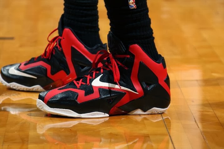 Last night, LeBron James debuted a new version of the Nike LeBron XI in Black, Red and White. James laced up the new Miami Heat PE in the first quarter and then went back into what seems to be his primary shoes… the Nike Zoom Soldier VII. The on-again, off-again relationship between LBJ and his latest signature shoe continues and even though he’s wearing the modified version the problem still remains. Hopefully, the Elite version, which is still a couple months away, will deliver the proper improvements.