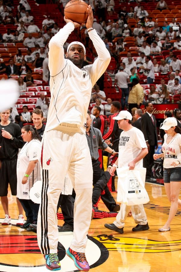 You’ve already seen the media images presenting the Nike LeBron X “What the MVP” edition. LeBron James has started the first game of the second round series wearing these, but he’s already switched back to the LeBron X PS Elite Miami Heat Home PE. Still, this gives us a chance to take a closer look at the upcoming MVP X’s straight from the American Airlines Arena. The “What the MVP” LeBron X fuses unique colorways and designs of each style in the LeBron 10 series including strong influences by the All-Star and BHM colorways. Let us know what other styles do you see here?