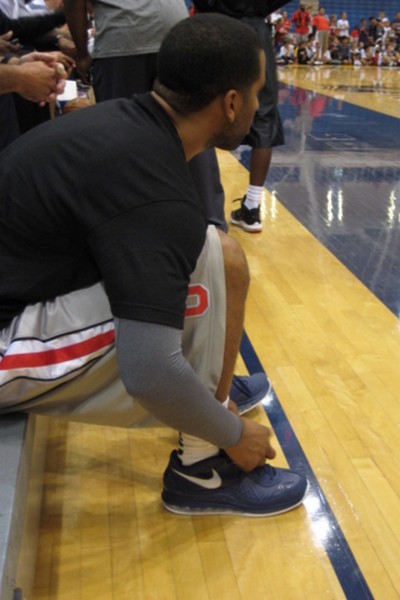 We already saw the Black Nike LeBron VIII on James’ feet last month during the LeBron James Skills Academy. Currently he attends his annual camp called King’s Academy Camp in San Diego. This is the 5th edition and unlike the LJSA, the UCSD camp is mainly for kids. LeBron broke out the blacked out AMLVIII again and this time we get slightly better pics. Also, one of his friends debuted a different version of the VIII, which may or may not be the next low top from LBJ’s signature collection.