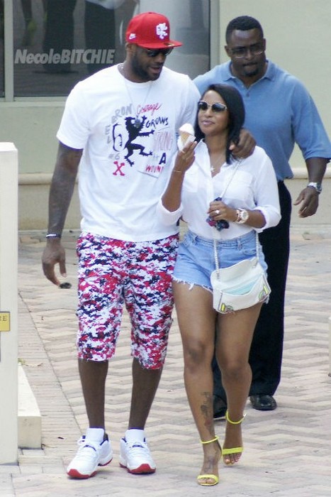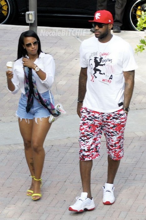 Earlier this week, the soon-to-be-married couple LeBron James and Savannah Brinson were spotted in Miami grabbing some ice cream at a local restaurant. James enjoying the hot Miami weather laced up the Nike Air Jordan XI Low in White and Red and a matching LeBron Hort Graphic Tee from his Nike Sportswear signature collection.