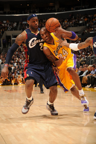Last night, two All-Stars players, Kobe Bryant and LeBron James, faced each other in the very anticipated Cavaliers vs Lakers match up. It was a battle of two of the best teams in the NBA (at that very moment), two of the best players in the game (arguably), and two of the best basketball sneakers in the game. Kobe vs LeBron – the never-ending story. However, if was the Lakers that were celebrating the 105-88 victory in the end. Both superstars were having problems finding an easy way to score as they were guarding each other most of the time in this very physical match up. As for the kicks involved Kobe unveiled the new “Mamba” colorway of his latest signature sneaker Nike Zoom Kobe IV. LeBron, just as expected, rocked the ZLVI Los Angeles edition, which features a predominately grey upper with smoke grey and red accents, but wasn’t a good fit for Cavs’ alternate road jerseys. Plenty of game photos after the jump.