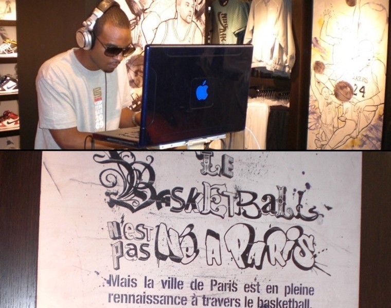 Yesterday morning was the opening of the first House Of Hoops store in Europe, in the area of the Foot Locker Chatelet/Les Halles store in Paris. With the presence of LeBron James, who opened the store from 9 AM to 11 AM, we could find essential elements of this space dedicated to basketball: the wooden design, Nike and Jordan Brand products, just as well as pictures presenting basketball’s biggest stars sponsored by Nike. For this private opening, before the public one (at 11:30 AM) for the fans who were already waiting at the entry, French Dj Lord Issa and Dj Nas were hosting the place with music for Foot Locker Europe executives and Nike and Jordan Brand representatives. Today will see the opening of House Of Hoops in London, another stop in Lebron James’ More Than a Game World Tour.