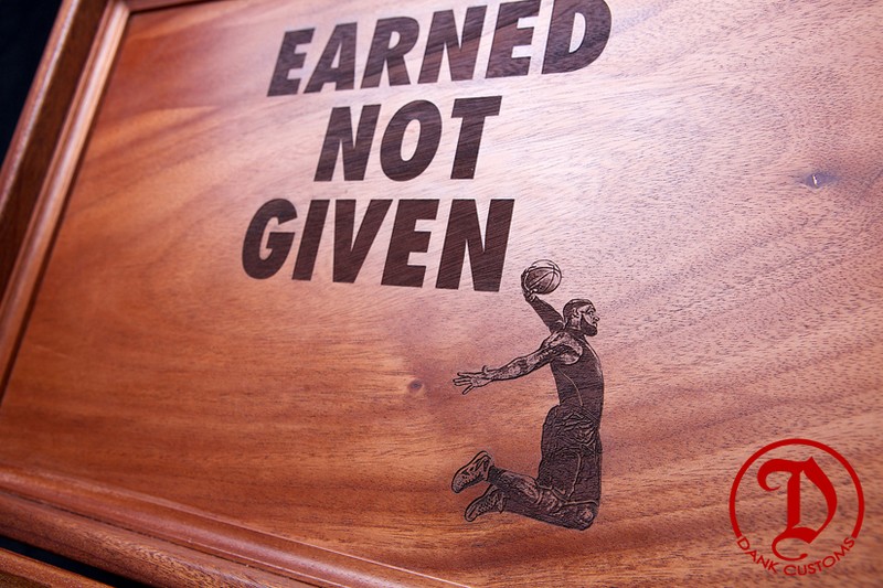 LeBron James was one of the first superstars to truly acknowledge the custom sneaker game by reaching out to Mache for the creation of the Ironman 3 inspired colorway of the LeBron X. With much more reasons to celebrate after winning his 2nd NBA title, he once again outsourced his sneaker needs outside of Beaverton, Oregon and connected with another customizer Jake Danklefs aka Dank Customs for the creation of the “Championship” LEBRON X PS Elite. The shoe features a black and metallic gold upper with red trim along the panels and Swoosh border. “Champ” and “MVP” tags appear on the heels, while custom trophy tags adorn the tongues. On the inside, there are two custom insoles featuring James sitting with his trophies and the celebratory “WIITNESS” logo. The packaging is just as special. The shoes came in a wooden box with lasered details including the “Earned not Given” catchphrase and the retired Lionhead logo. They were gifted to LeBron, who has already shared his newest pickup on Instagram.
