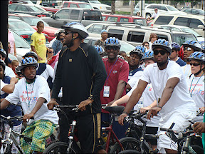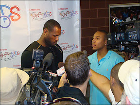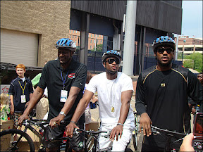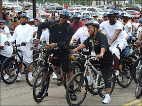 After giving away 400 bicycles to kids, $150,000 to area community groups and leading about 2,000 riders in the third annual LeBron James’ King for Kids Bikeathon on Saturday afternoon, the Cavaliers superstar gave away DVDs, MP3 players and eventually tossed not only his shirt, but his shoes, sunglasses and his watch into the crowd to the delight of hundreds of fans. LeBron James invited several of his celebrity friends and NBA brethren to help raise money for the Akron YMCA, Akron Urban League and his own foundation that supports youth services, said Jakki Nance, executive director of the LeBron James Family Foundation. Celebrities who came out to support James included Miami Heat guard Dwyane Wade, former Ohio State football star Troy Smith and former Indians player Kenny Lofton. Also on hand for the bike ride were Cavaliers guard Daniel “Boobie” Gibson, General Manager Danny Ferry and head coach Mike Brown. James led more than 300 children who received the free bikes on a 1-mile ride through the city before the main ride, which was for eight or 16 miles, depending on how far participants wanted to pedal. “Kids in my community… they don’t get an opportunity to have fun all the time. I’m happy that I’m able to give back to the kids. I don’t care about nothing else… that goes on around here besides the kids having fun and having an opportunity to have a dream and live a dream,” James said.