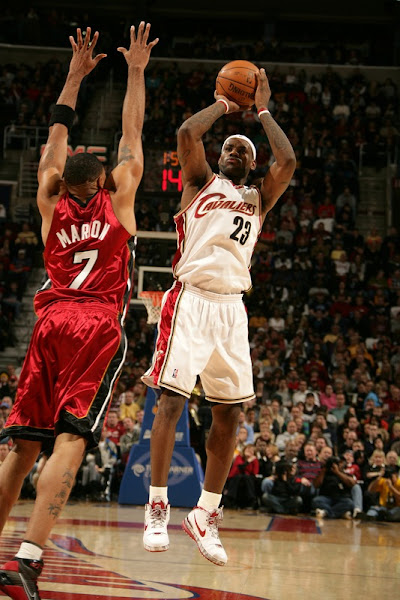 On his birthday, LeBron James went head-to-head with one of his good friends – Dwyane Wade. Both of them were part of the “Redeem Team” this past summer, and King James reminded us of that by wearing his Nike Zoom LeBron VI “United We Rise” edition. James played in a similar colorway during the 2008 Olympics Championship game in Beijing, but this time he broke out the commemorative “Witness Gold” version. On another note, yesterday, King James was spotted hooping in the “Triple Black” Six for the very first time this season. It’s the lastest General Release colorway, that hit retailers last month. Although this was the debut for James and the All Black ZLVI, oddly it was not the first time this sneaker was seen on NBA courts. New York Knicks guard Nate Robinson, who’s been known for rocking both Kobes and LeBrons in the past, hooped in “Triple Black” VI’s several times in December. Check out the updated Timeline secion featuring all shoes worn by The King. As always the Home PE gets the best exposure as it’s been LBJ’s weapon of choice in 17 out of 33 games played. More action photos from past four games after the jump.