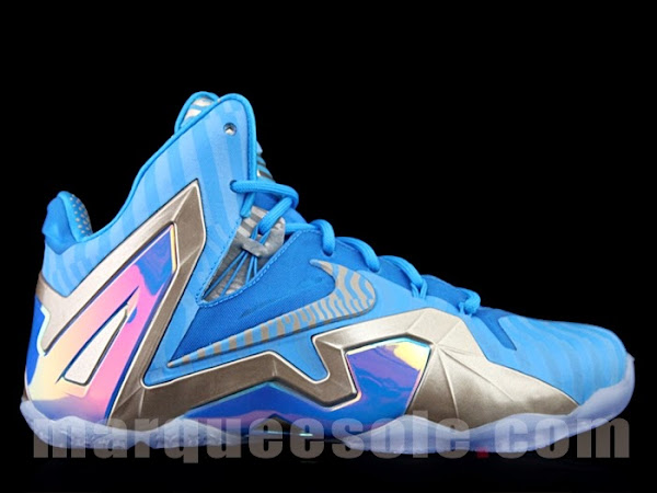Nike Basketball has not given up on the LeBron 11 Elites just yet. Seems like one of the wildest designs in the recent history has been reserved for the very end. It looks more like one of Dwyane Wade’s crazy Way of Wade styles, which usually set the bar high on creativity. The presented Blue and Grey base is unlike anything we’ve seen from Nike LeBron collection with a very interesting 3M stripes pattern all over the upper and an iridescent finish on the Hyperposite. There’s no word on the inspiration just yet, but everything points to these being a late season drop in the works. Stay tuned for more updates and let us know if you’d be interested in picking up a pair.