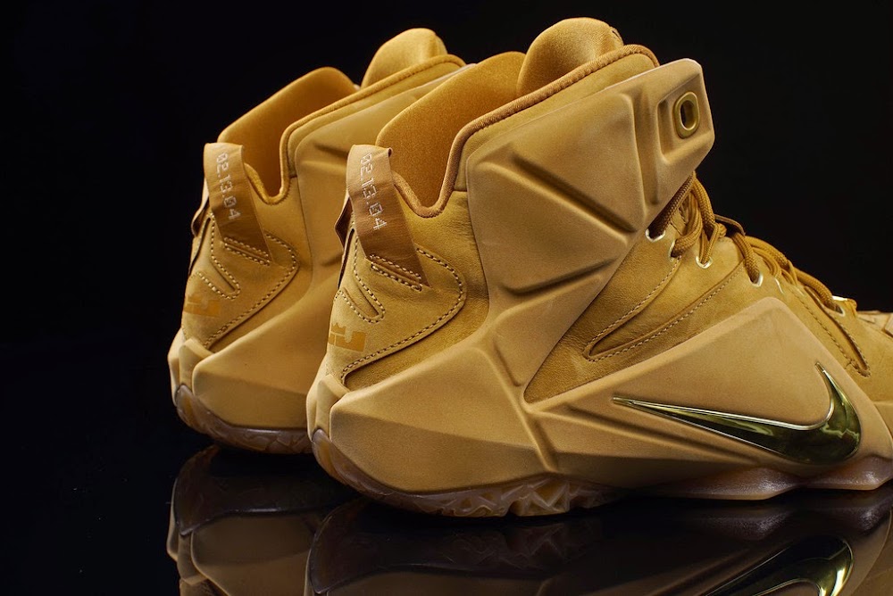 We’re only two days away from one of the most exiting Nike LeBron releases in this iteration or perhaps in the whole Jason Petrie era. Nowadays, LeBron James can boast over 10 All-Star appearances, multiple MVP awards and the game’s most precious accomplishment. Before it all, he took part in one of the most highly anticipated Rookie challenges ever, racking up 33 points for the now legendary 2003-2004 rookie class. The special moment called for special footwear, with LeBron wearing his debut Air Zoom Generation in the now highly coveted “Wheat” make-up. Eleven years later, the silhouette that started it all inspires a limited edition take on the upcoming LeBron XII EXT. Geared for off-court use, the LeBron XII EXT features a wheat nubuck upper with metallic gold accents. As a nod to LeBron’s memorable rookie challenge performance, the heel pull-tab displays the date 2.13.04. Classic LeBron branding on the tongue tab and sockliner tie back to the legendary Air Zoom Generation. The official released is slated for April 4th with a heavier than usual $250 price tag.