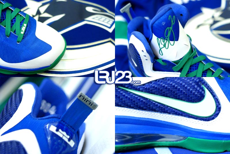 Following the “Super Flame” Nike LeBron 9 iD customized by H-Leung is this new White, Blue and Green make up – a reference to Vancouver Canucks NHL hockey team. Fans are already receiving their first orders and it’s nice to see abt combining his two passions… LeBron James & Vancouver Canucks. Fortunately the first iD options allowed for this customization, but please remember that new options are coming next year. If you have also received your LeBron 9 iD… feel free to contact us and send us pics.
