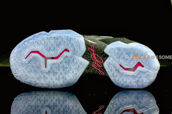 With the release schedule for the Nike LeBron XI gaining more steam each day, let’s take a closer look at one of the upcoming drops. The Black/Metallic Silver-Dark Grey-Pink Foil colorway, aka “Carbon”, is scheduled to be released on December 14h, 2013 and today we’re granted with a decent preview. No more blurry pics. The Carbon LeBron XI features a simple predominantly Black upper with a lot to offer with its Pink details, Carbon fiber Hyperposite panels and translucent outsole. Hit the jump for a better look and stay tuned for more LeBron 11 release updates via the blog, twitter, or facebook.