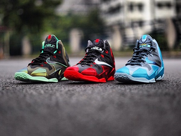 The Nike LeBron XI is going to launch globally on October 12th in the King’s Pride colorway. Fans in Asia will be able to get the XI’s sooner, because the Terracotta Warrior version will drop on October 1st in Greater China and nearly 2 months later in other countries. The classic Black and Red colorway will be released on October 31st… just in time for the 2013 NBA Season. The newly discovered Gamma Blue LEBRON 11 joins the pack with an official launch on November 16th in a variety of sizes (Toddler, Preschool, Grade School, Men’s). Continue reading for some new LEBRON XI photos.