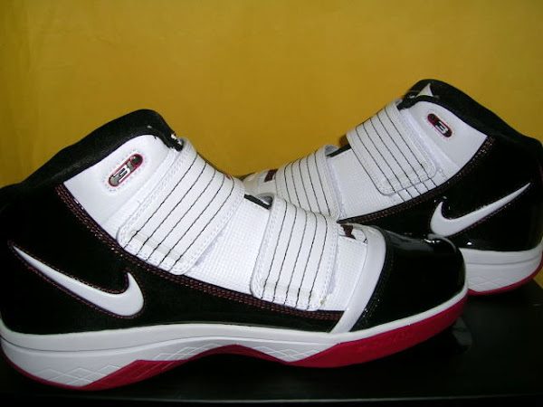 The Black, White and Red (or Crimson for that matter) become a standard in LeBron James’ Signature Collection a long time ago. Today is the premiere of the initial colorway (354815-011), but also the Playoff edition (358559-101) should start popping up here and there. It features the same colors, but in a different setup, and is expected to be released this weekend as well. The POP ZS3 is most likely to see some action tomorrow as King James will begin his post-season run and it’s actually more suitable for Cavaliers home jerseys. So we have two Black/White/Red Soldiers this year… and they both drop around the same time. By the way, according to ISS member Jang they are available in stores in Akron area, which is good news cause so far they have been seen only in Asia. Which one do you prefer? Flashy Playoff edition featuring a Patent Leather upper or the regular one with a little more subtle looks? Pica via ben651020 of kenlu.net.