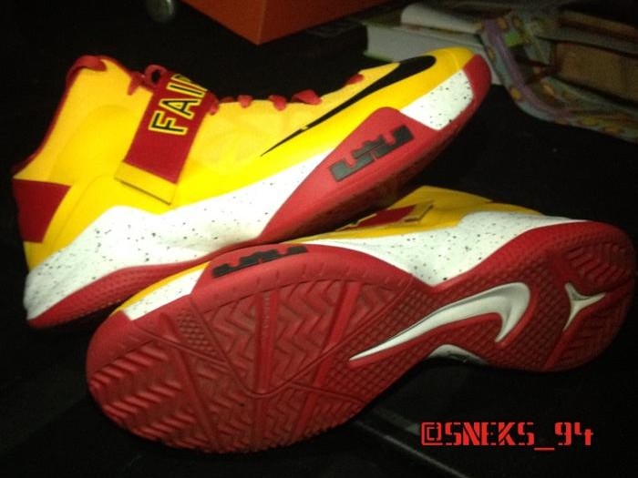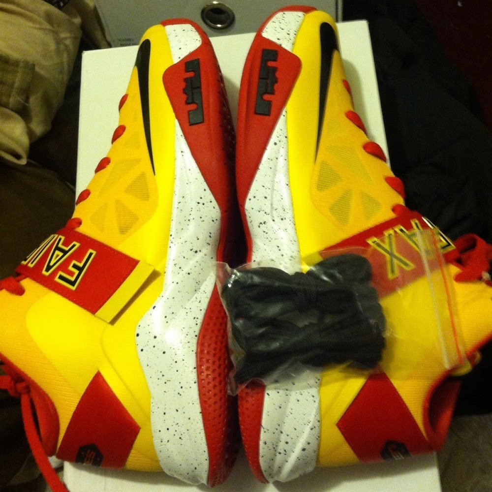 In an interview about his last game, LeBron James explains why he wore the Zoom LeBron VI Fairfax PE. The most obvious reason is the common color theme shared amongst the Fairfax Lions and the Miami Heat. In short words… LeBron just went with the flow coming back Home. There’s no Fairfax style for the current Nike LeBron X, but check out a new version of the Nike Zoom Soldier VI. Joining Homes and Aways is an new alternate Home colorway. The shoes sport a predominantly Yellow upper with a big FAIRFAX logo on the midfoot strap. Big thanks to @sneaks_94 for the pics.