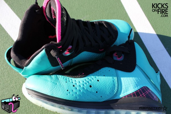 I’m pretty sure these shoes need no reminder, but with only a couple hours left till the official drop, let’s take yet another look at the South Beach Nike Air Max LeBron 8. Initially released last month at selected accounts in Miami area, however, starting tomorrow the Pre-heats start their expansion outside of Miami. The South Beach 8’s will be available at Nike Quickstrike accounts, House of Hoops location, several Footaction stores and online at eastbay.com and nikestore.com (midnight). The quantity remains unknown, but they are indeed very limited, so be sure to place your order as soon as possible. In the meantime… batch of new photos after the break.