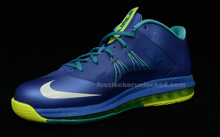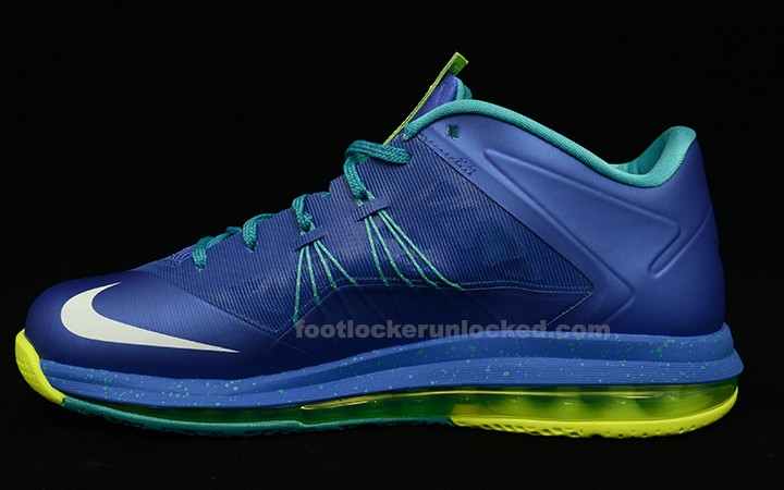 It is a huge weekend of releases and we have two new pairs of Nike LeBron X’s releasing in just a couple of hours. One will be the Elite model of the LeBron X, which is apparently called Miami Dade, and the other is the Air Max LeBron X Low “Violet Force” – a remix colorway that reminds us of a few other popular LeBron releases in the past. Sporting a Violet Force/Pure Platinum-Volt-Sport Turquoise colorway, the newest member of the LeBron X Low family appears to be a mix of the “Sprite” and “Summit Lake Hornets” styles of the past. A violet force Hyperfuse upper incorporates the newest color from Nike nicely with sport turquoise accents on the exposed Flywire, speckled midsole, and inner lining. A volt outsole sits under the 360 Air Max bubble that also features volt in its structure. The LeBron X Low “Violet Force” releases today at Foot Locker, House of Hoops, Champs and online at nikestore.com, eastbay.com etc. Check the new photos below and let us know what you think of the colorway in the comments.