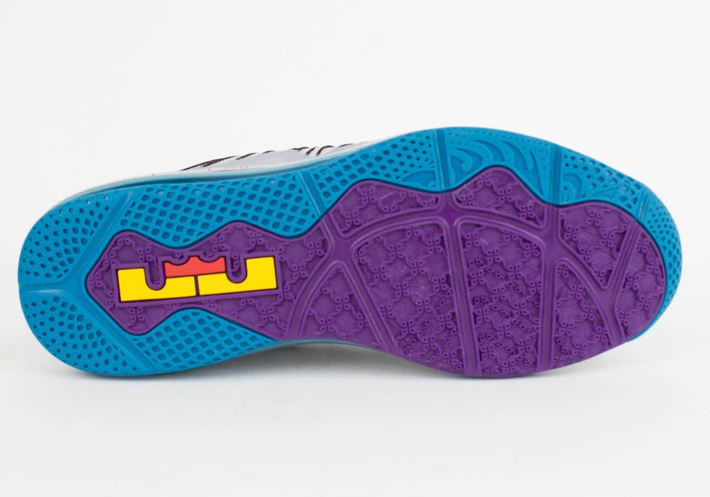 Even as a member of the Miami Heat, LeBron continues to pay tribute to his hometown of Akron. His love and deep connection with this town can now be reflected through his signature shoes. Inspired by the colors of the minor league baseball team, the Akron Aeros, this LeBron X Low comes in with a full metallic platinum upper and a few accent colors including black, teal, purple, yellow, and red. Black works the Swoosh design and the Flywire cables, while teal makes up the inner lining, the Max Air Unit, and the outsole. Lastly, a speckled midsole in red caps off the shoe. The rich palette makes for probably the longest style code ever… Metallic Platinum/Black-Tropical Teal-Challenge Red-Court Purple-University Gold. The Nike Air Max LeBron X Low is available not at major Nike Basketball retailers for $165.