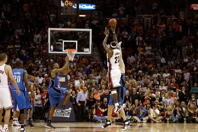 So how did the play develop? Well, first off, Cavs Head Coach Mike Brown said, “That’s not what we drew up.” The Cavs wanted to lob the ball to the rim for James to catch for a layup or dunk. That was Option A, an end-of-game play used Feb. 10 at Indiana. But if that wasn’t there, Williams still knew where the ball would end up. “Option B was LeBron. Option C was LeBron. Option D was ?Big Game James,’ ” Williams said. “And that was Option D that you saw.” When the teams huddled during the timeout before the shot, Orlando Head Coach Stan Van Gundy’s mind quickly flashed back to Cavs game tape he’d seen from Feb. 10. “They were looking for the back-door lob to LeBron, same play they ran (at Indiana just before the All-Star break),” Van Gundy said. “… I’ve seen that play. I’ve seen it in one of the craziest games I’ve ever seen in that game with Indiana, back-to-back fouls on guys going for the lob.” That night, questionable foul calls both ways resulted in James’ tying the game on two free throws with four-tenths of a second left before Indiana’s Danny Granger won it with a free throw with a tenth of a second left. Sold on the fact the Cavs were running that again, Van Gundy sent out a defense designed to stop it. “You know, Stan was in our huddle,” Brown joked. “That’s exactly right. We were going for the lob.” Magic defender Hedo Turkoglu instantly reacted when James made what looked to be the start of a cut to the rim from the right side of the paint. “I just jumped in front of him, and he stepped back,” Turkoglu said. By Turkoglu committing himself to stop the lob, James saw he could retreat to the top of the key and get the separation needed to shoot a jumper. James told Williams before the play, “Whatever it takes from me, I’m going to come get the ball.” Van Gundy blames himself for not defending the play differently. He didn’t say what changes he might have made. “It may come up again, so we are not getting into that.” He probably wished he left better help for Turkoglu at the top of the key to prevent James from getting a relatively clean look at the hoop. What Van Gundy didn’t second guess was the decision to put the 6-foot-10 Turkoglu on the 6-8 James. “You really think another guy would have blocked that?” James got incredible lift on the shot. He was well above Turkoglu and a hard-charging Rashard Lewis, who’s also 6-10, when he released with six-tenths of a second left. “And, man, it was crazy watching the ball when he threw it up,” Magic center Dwight Howard said. “It was like watching a movie. The ball was just spinning. It was like watching a real movie.” The Cavs, of course, weren’t surprised. “I kind of expected it, because that’s what he does,” Cavs guard-forward Sasha Pavlovic said. “He makes all kinds of shots in practices.” The little kid in James has never gone away. He’s still hoisting up shots in practice, before practice, after practice ? always imagining it as a game-winner from whatever distance or angle he shoots it. “I’m catching, shooting things that may not happen in a game,” James said, “but, you know, it happened tonight.” Source: News Herald, CantonRep.