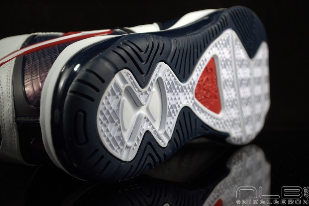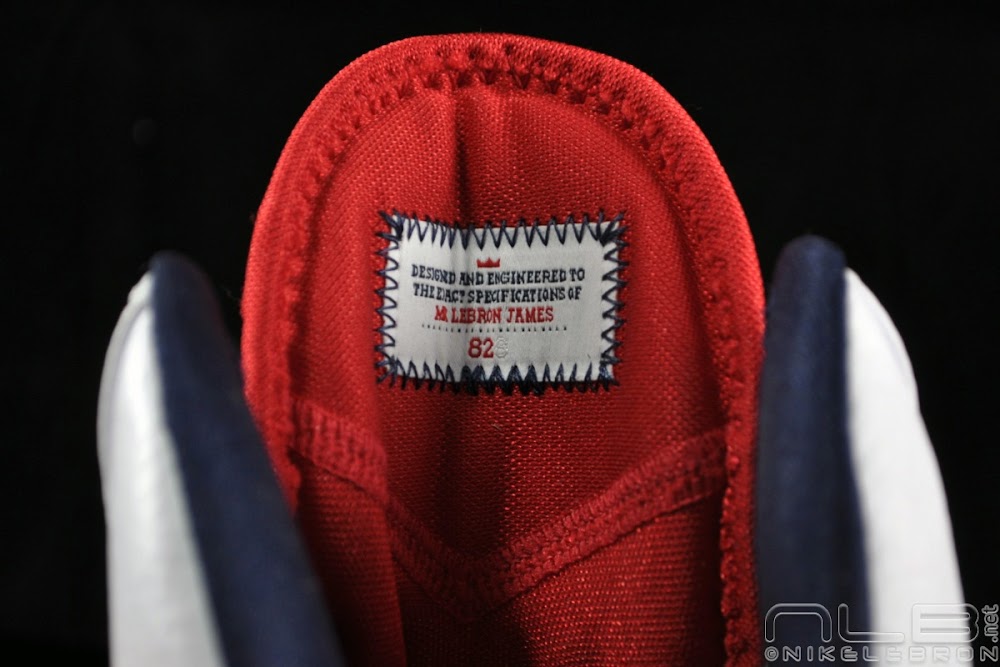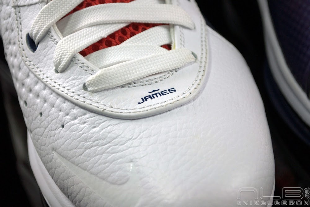 November 11 is Veterans Day. LeBron salutes those who have served with a red, white and blue Nike LeBron 8 in Miami tonight. The USA Basketball edition now also known as “Veterans Day” shoes is King James’ weapon of choice for tonight’s match up against the Boston Celtics. The popular White/Navy/Red colorway returns in fabulous style. It features white tumbled leather upper, iridescent navy Flywire panels, and prominent red tongue. Look for these in stores on November 24th, 2010 and check out LBJ rocking these tonight on TV. Continue reading for new crispy & detailed photos.