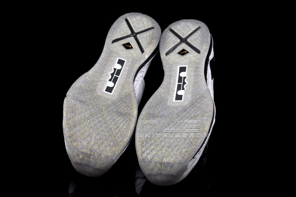 Last season, the White and Gold edition of the LEBRON 9 PS was the most special of all colorways. Despite Nike designing a commemorative NBA Finals edition, which King James did wear in Game 1, it was the Home Elites the rest of way (3 out of 5 NBA Finals games). It was the White and Gold Nike LeBron 9 P.S. that helped James capture his first NBA Championship. It was back in the day when we could actually get LeBron’s in-game kicks in the Playoffs. This season, LBJ wore 8 different Player Exclusive styles and none of the released models. This also excludes the presented White and Gold version of the LEBRON X P.S. It was also the only colorway to feature the Nike Plus capabilities. Although we cannot tie it directly to LeBron’s success and his second ring, it’s still one of the better colorways. Check out our detailed look below, which includes both Black and Gold speckled laces.