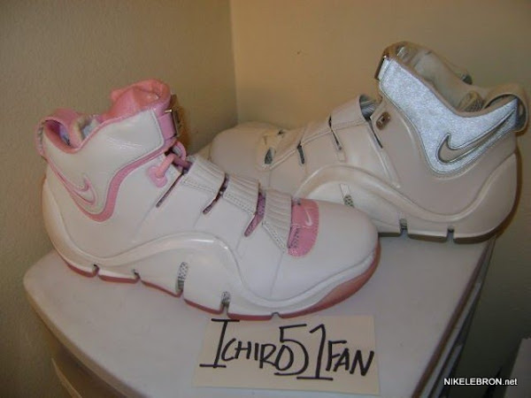 The Gloria Zoom LeBron IV Player Exclusive is one of the rarest LeBron James shoes. For several years we’ve been hearing nothing but rumors about the existence of this pair… until they have finally leaked to the Internet back in 2007. The first real photos surfaced one year later only to tease with some anxious Nike LeBron collectors. Now everybody gets a chance to buy a pair as they’re available right now on eBay. One pair has made it through as it’s the first time we’re seeing them listed for sale. This White and Pink ZLIV features a white upper with a translucent Pink outsole highlighted by more Pink details like Swoosh outline, laces and ankle strap border. The only downside… they’re size 6.5. Continue reading for a fresh batch of photos.