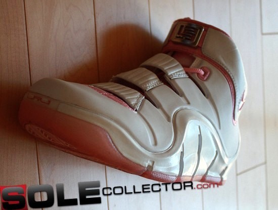 Since LeBron’s first season in the NBA and his very first signature sneaker – Nike Air Zoom Generation – Nike has made a special Friends & Family version of each shoe in a White and Pink colorway exclusively for his mom Gloria James. Usually all Gloria PEs are among the rarest of kicks, but the featured today Nike Zoom LeBron IV bests them all. With only a handful made this is nearly impossible to get, although a lot of people are trying really hard. This Pink ZLIV features a white upper with a special translucent pink outsole accompanied by more pink details like Swoosh outline, laces and ankle strap border. These are the first live pics that surfaced in the Internet. Via SC.