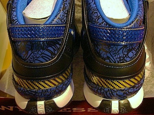If you’ve been wondering what lies ahead regarding the Nike Zoom LeBron signature shoes here’s some news. Apart from the Chalk-themed Birthday release and the limited City Pack VI’s there’s still something for those, who prefer General Releases. The White/Red Home Edition is scheduled to drop on 2/21/2009 (U.S.) as is this fresh new colorway you see below. This Black/White-Varsity Royal-Varsity Maize (346526-011) Nike Zoom LeBron VI is definitely one of a kind when it comes to Brons. Apart from a rare style they also display the Zoom LeBron VI main theme – the grafitti featuring words like Lebron, Akron, Witness, Four Horsemen, Ohio, Chosen One, Winning, Passion, Fearless, Gloria, Shine, Bryce etc.