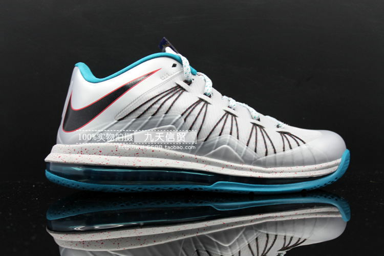 The Nike Air Max LeBron X in the presented Akron Aeros colorway is scheduled to be released on August 3rd, 2013. Inspired by the palette of the Akron Aeros – a minor league baseball team that shares their hometown with LeBron James. This pair sports a silver upper with contrasting Turquoise panels on the inner lining and the outsole. Black hits the Dynamic Flywire and the Nike Swoosh logos. This colorful design also features red accents throughout the upper and purple bottom, which gives the shoes a subtle Summit Lake Hornets feel. Continue reading for more pics.