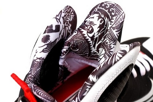 LeBron James continues to show love to the Miami community via this special make up of the Nike LeBron 9. This time it’s a collaboration with local artist Alvaro “Freegums” Ilizarbe. Using a simple black and white palette, Freegums’ signature print style can be seen on the inner lining of the shoe and on on the toebox in a tonal white-on-white treatment. His custom pattern was also used to create a limited edition box. The Nike LeBron 9 x Freegums will drop in limited numbers on December 31st, but they’re already arriving at retailers so keep your eyes peeled.