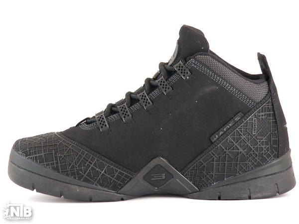 Apart from the released White and Navy and several confirmed colorways like the Black, White and Red, which is slated for release in June, and the China Exclusive, the All Black version of the Nike Zoom Soldier II is also expected to be released this summer. Besides the catalog pic, that presents the sample colorway, we already showed you this shoe back in December. Today we give you a couple more pics. This version has an Akron map inprinted accross the shoe instead of the usual perforation.
