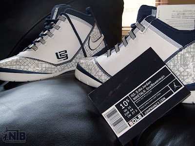 Last year the Nike Zoom Soldier I debuted in the summertime, but additional 4 styles were released later that year, as the basketball season was about to start. The team-colored White/Red, White/Green, White/Blue and White/Black were considered to be classic team shoes from LeBron James’ Nike Zoom Soldier signature line. In the case of this year’s Zoom Soldier II there are also two sub-categories of the shoe… the regular ZSII (includes all the exclusives) with LeBron’s Win-Fearless-Vision-Family-Passion circle on the tongue and the Nike Elite Team Basketball with the ELITE logo instead. We’ve already published two versions of the Elite’s and today we profile yet another sample in a White/Navy/Silver colorway. They might be released later this year just like the previous version, but more colorways should be available. Props to DJAirJordan for these exclusive photos.